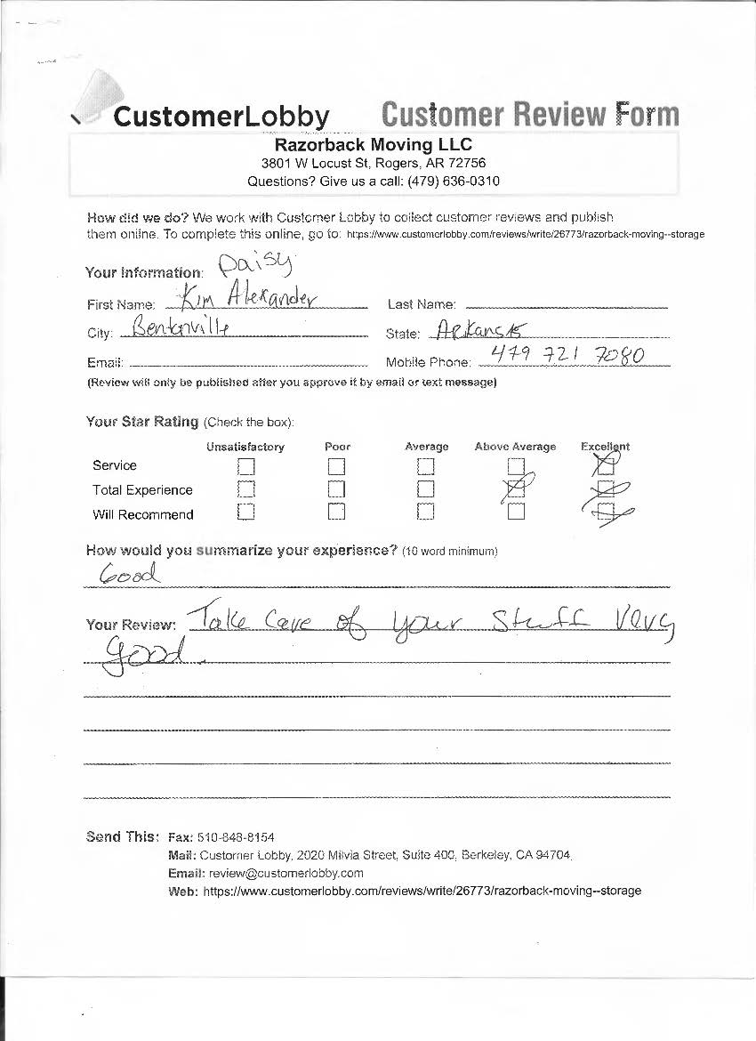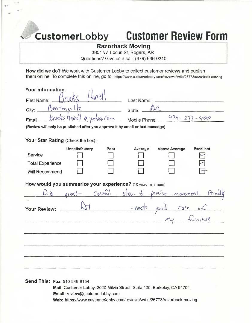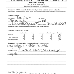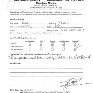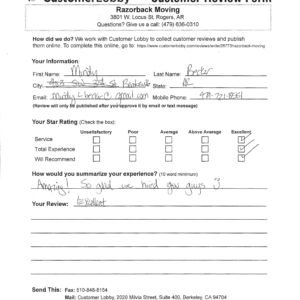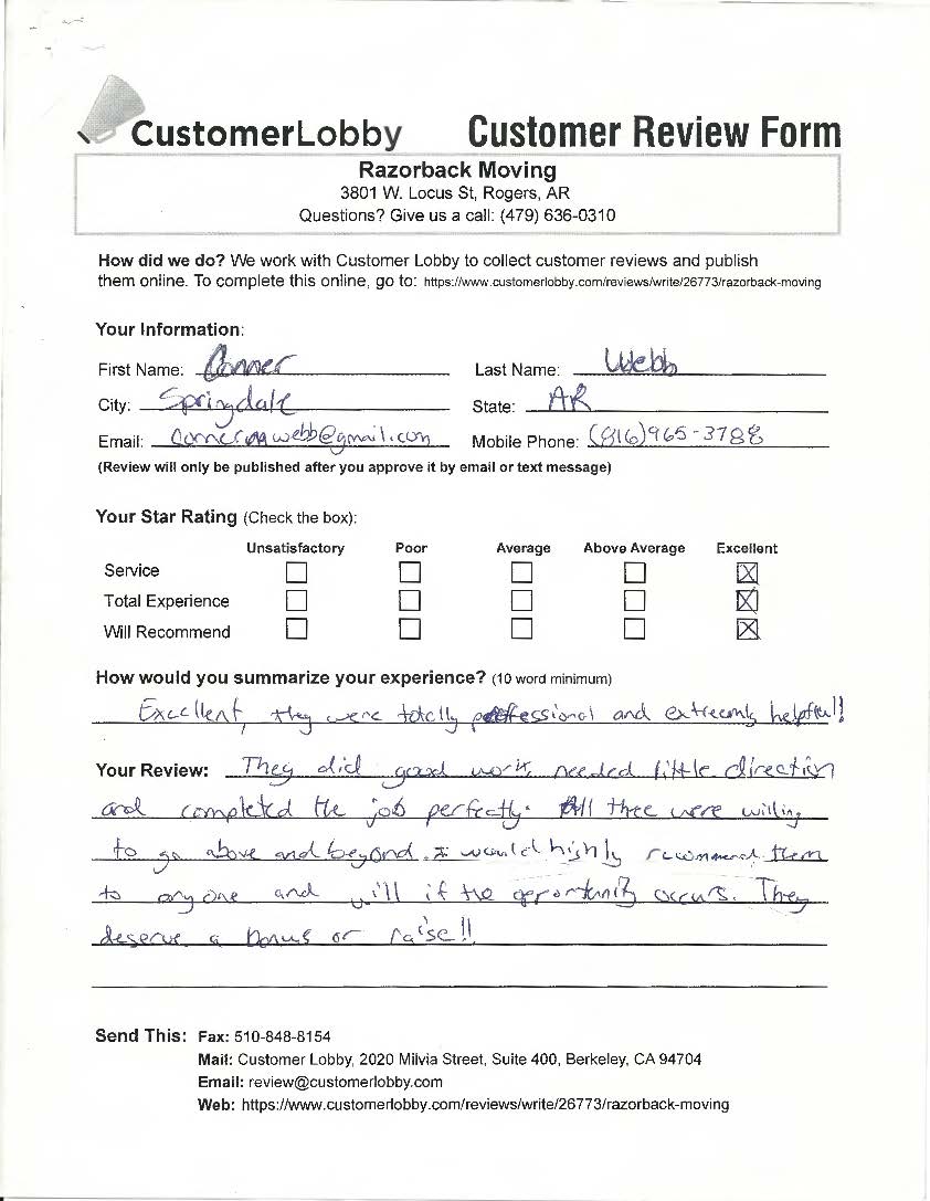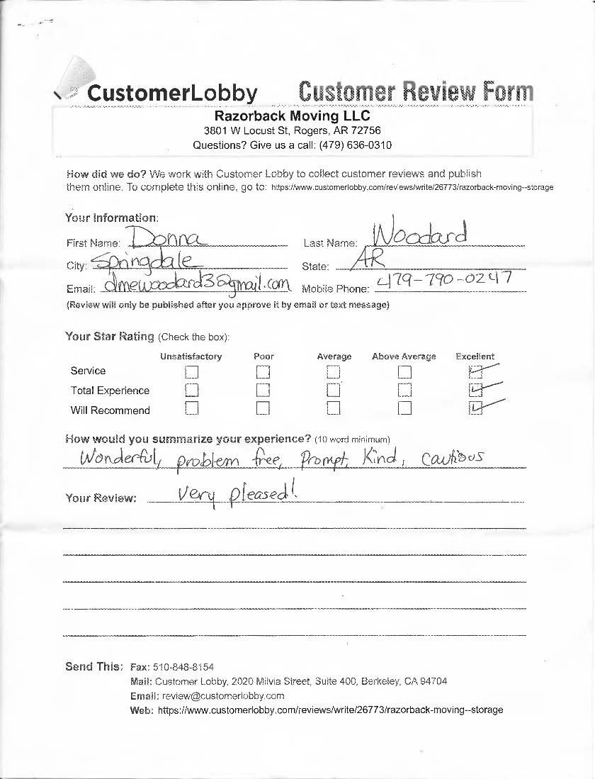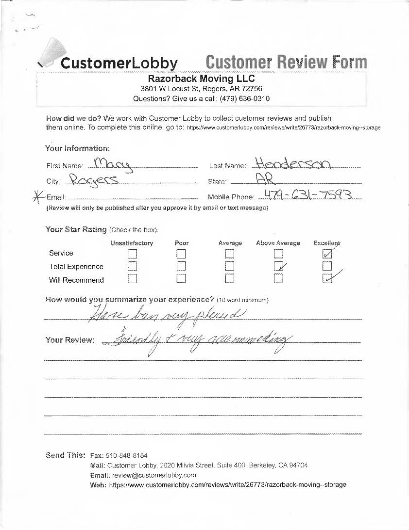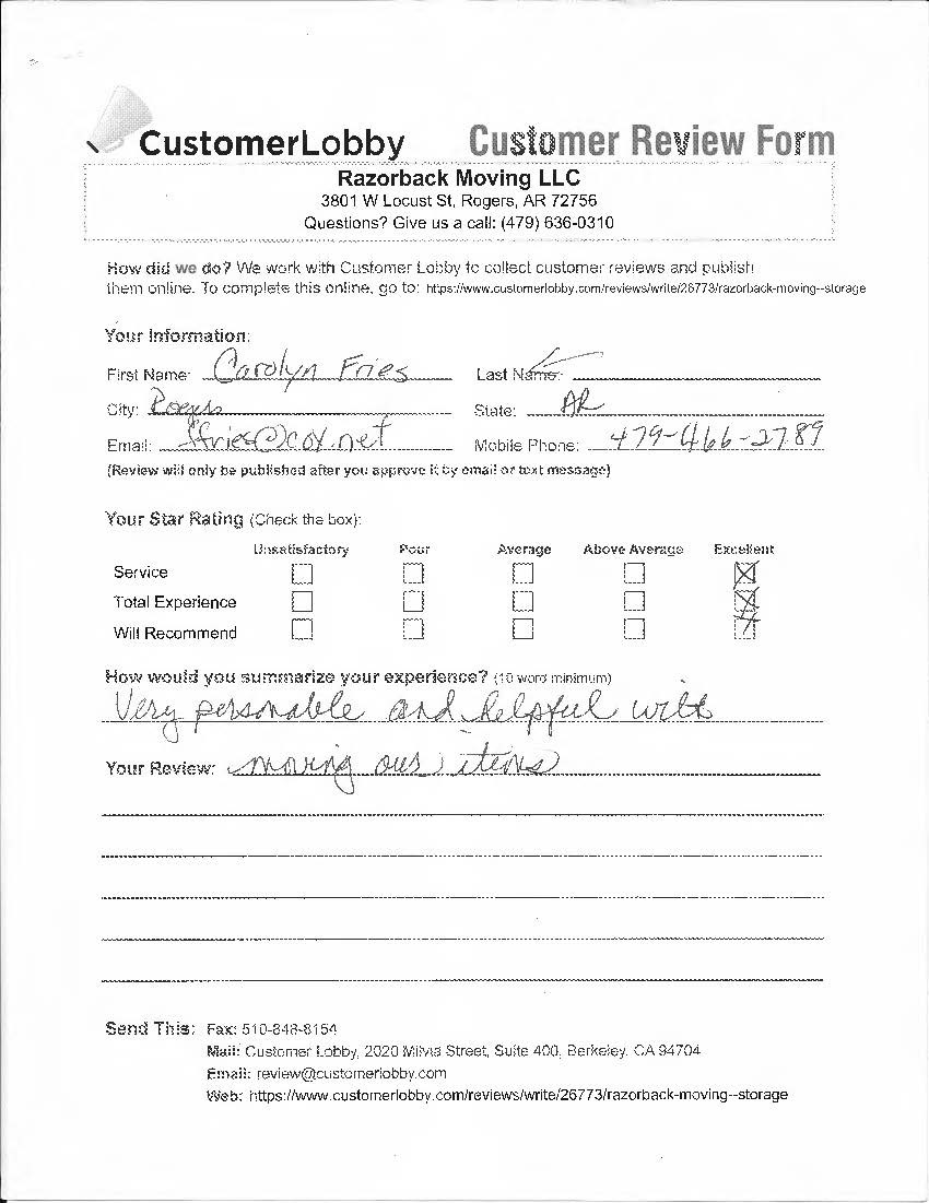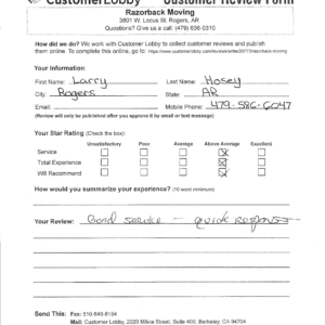 Reviews for Razorback Moving Company