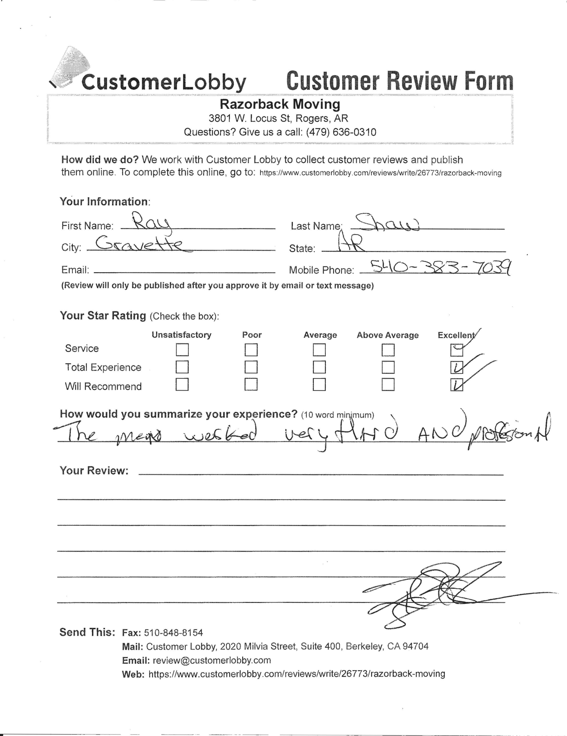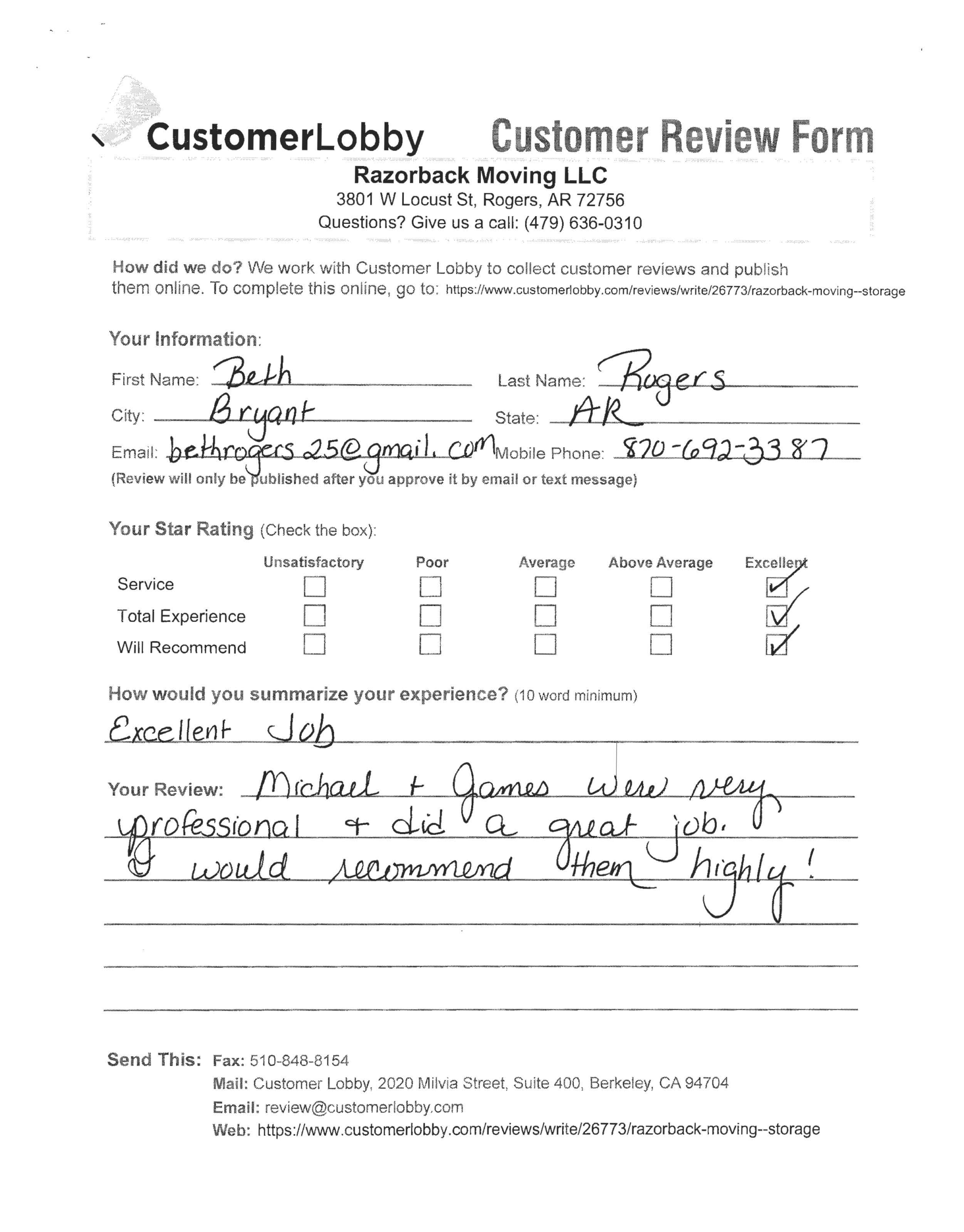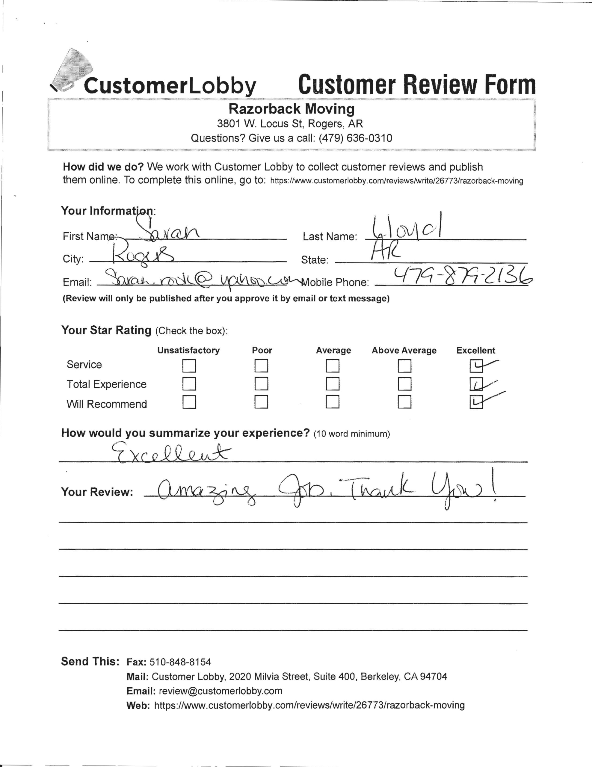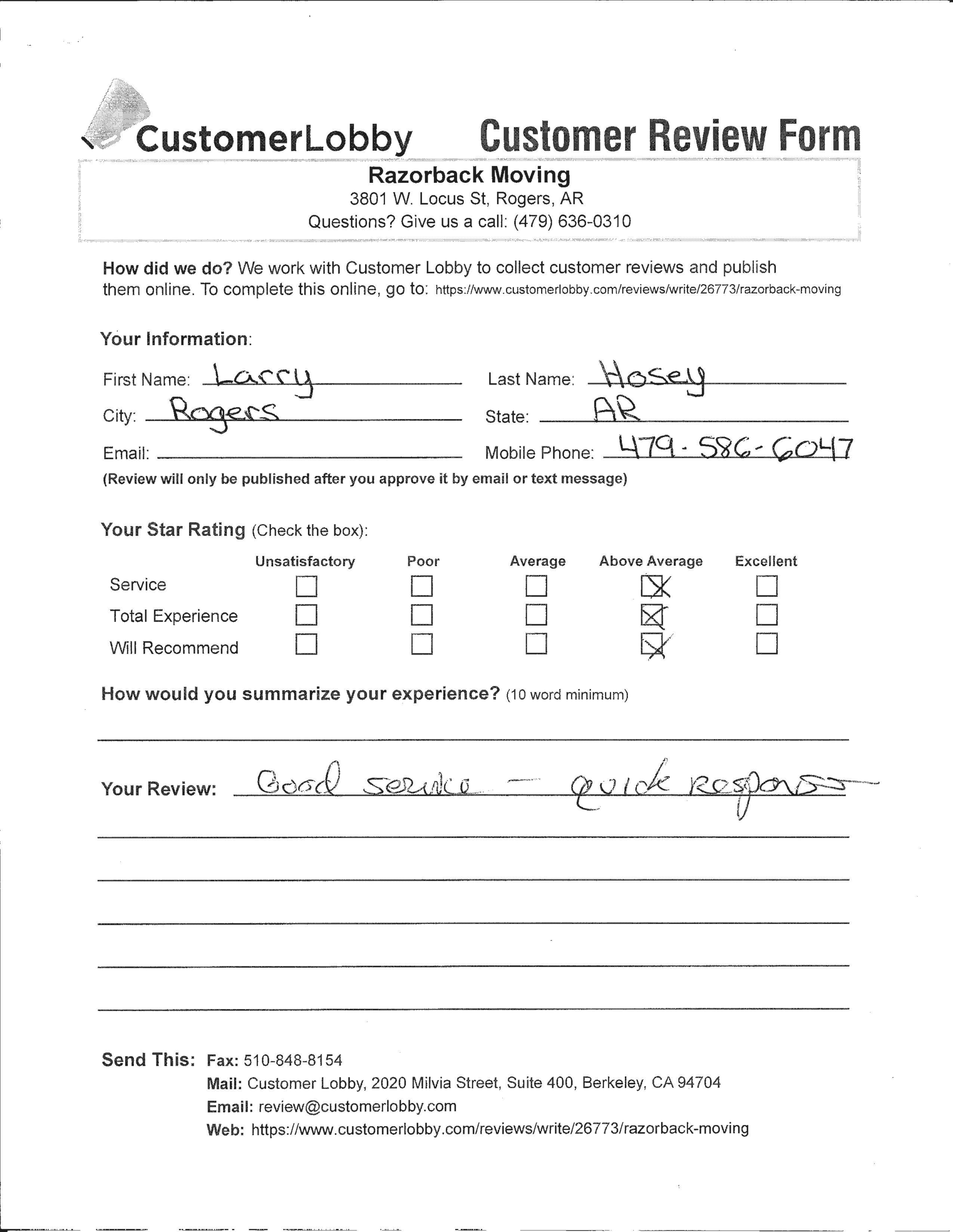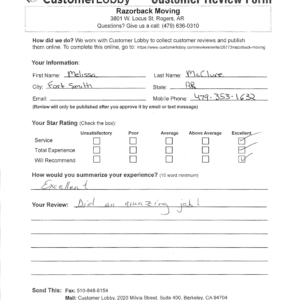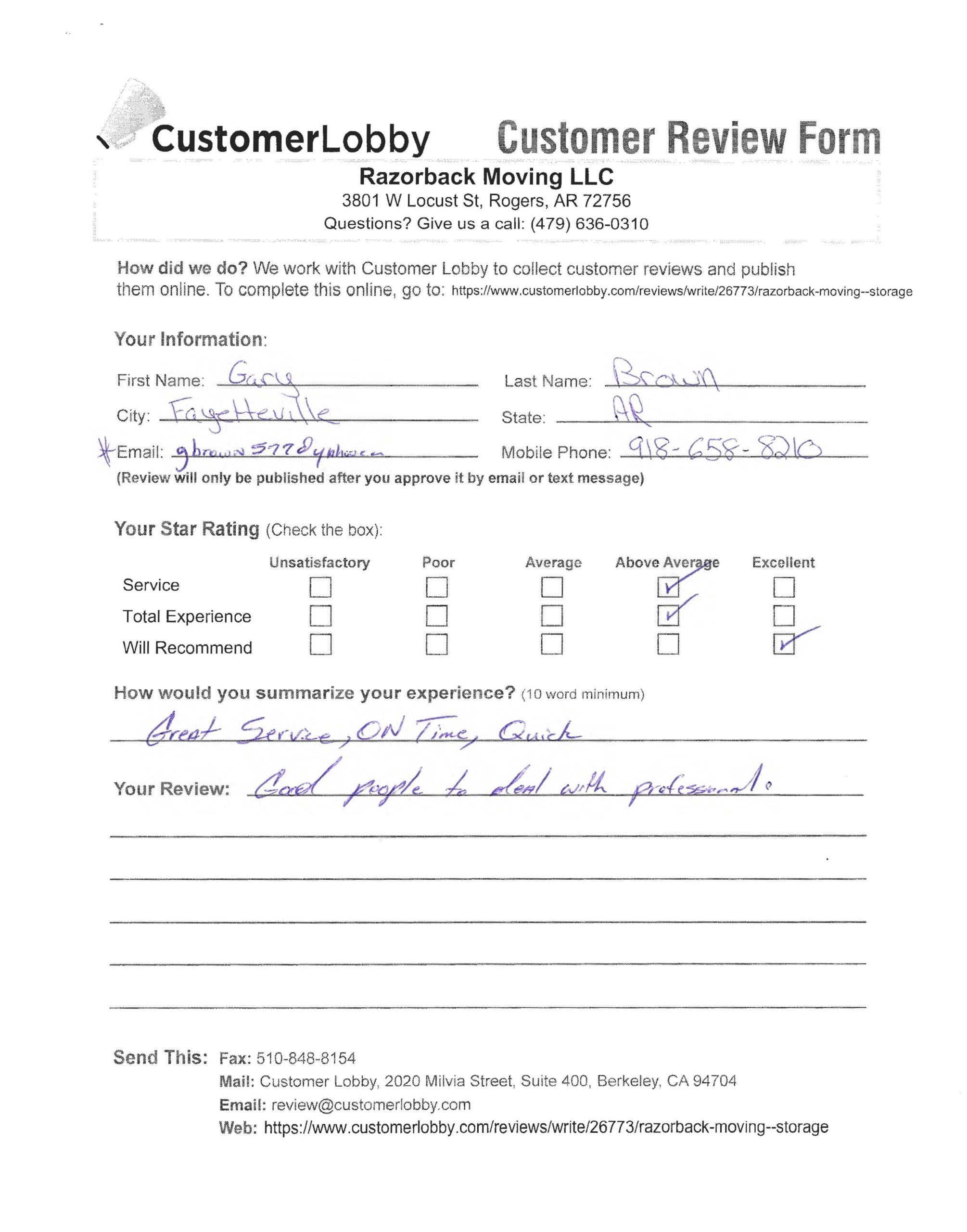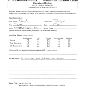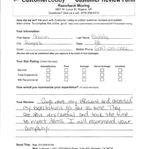 Reviews for Razorback Moving Company