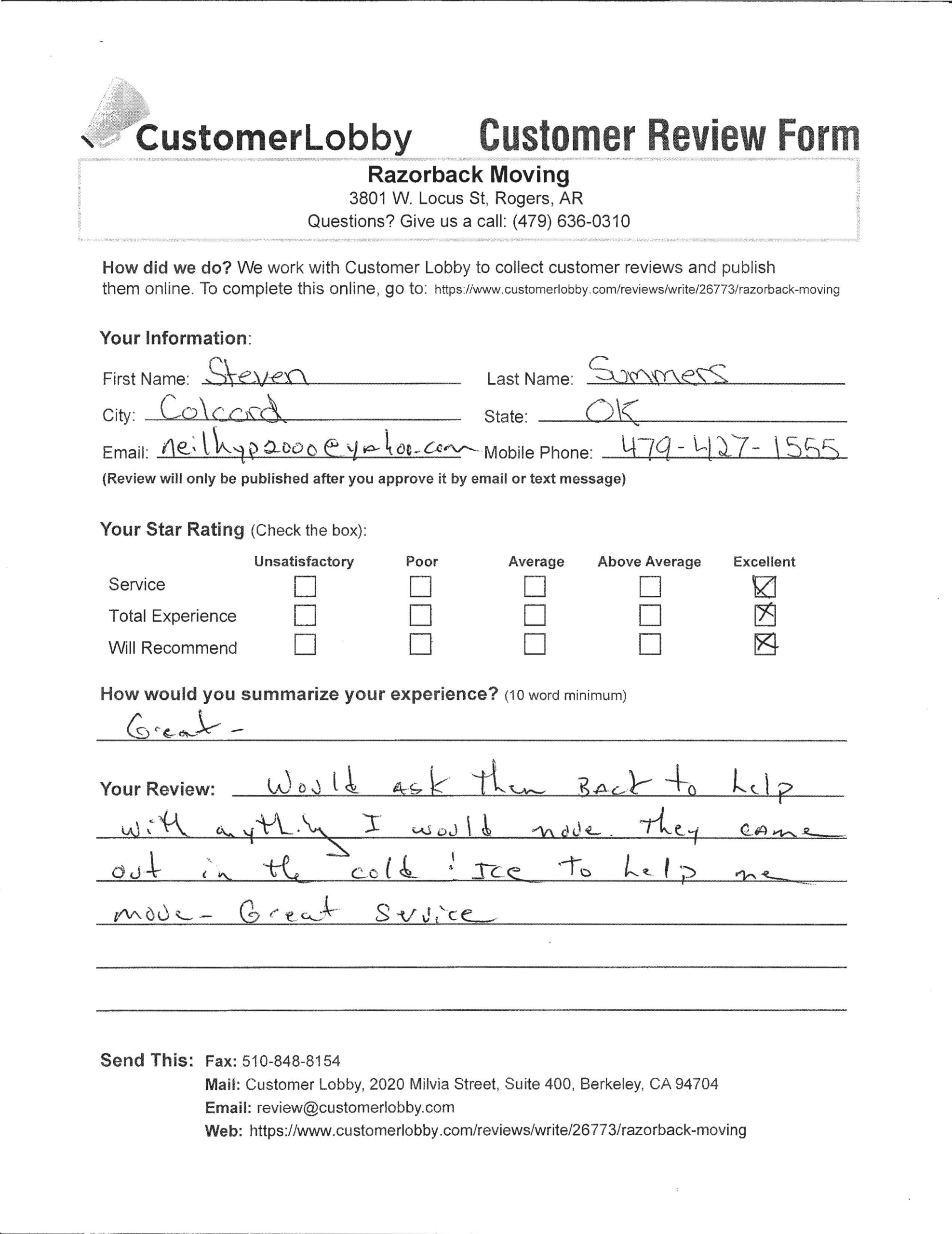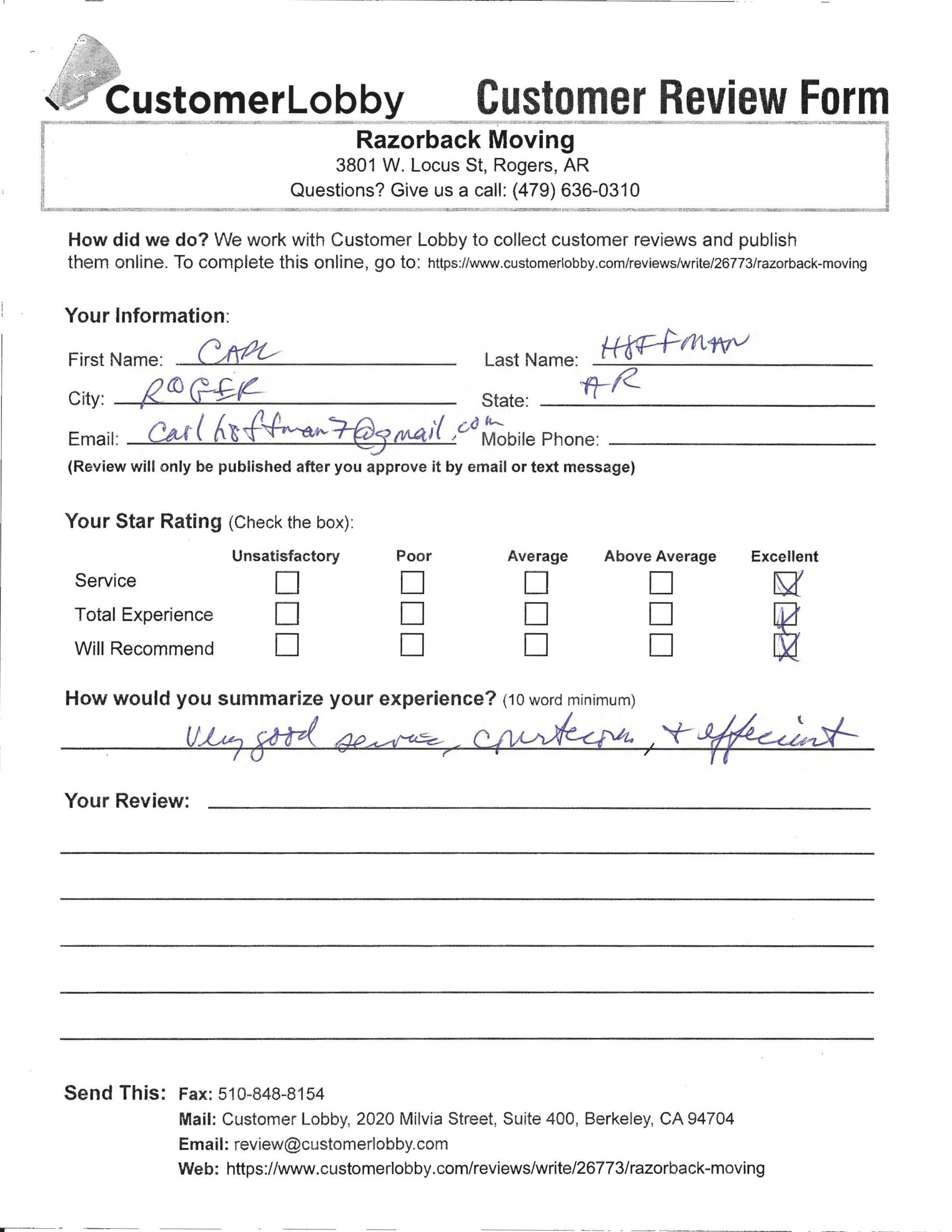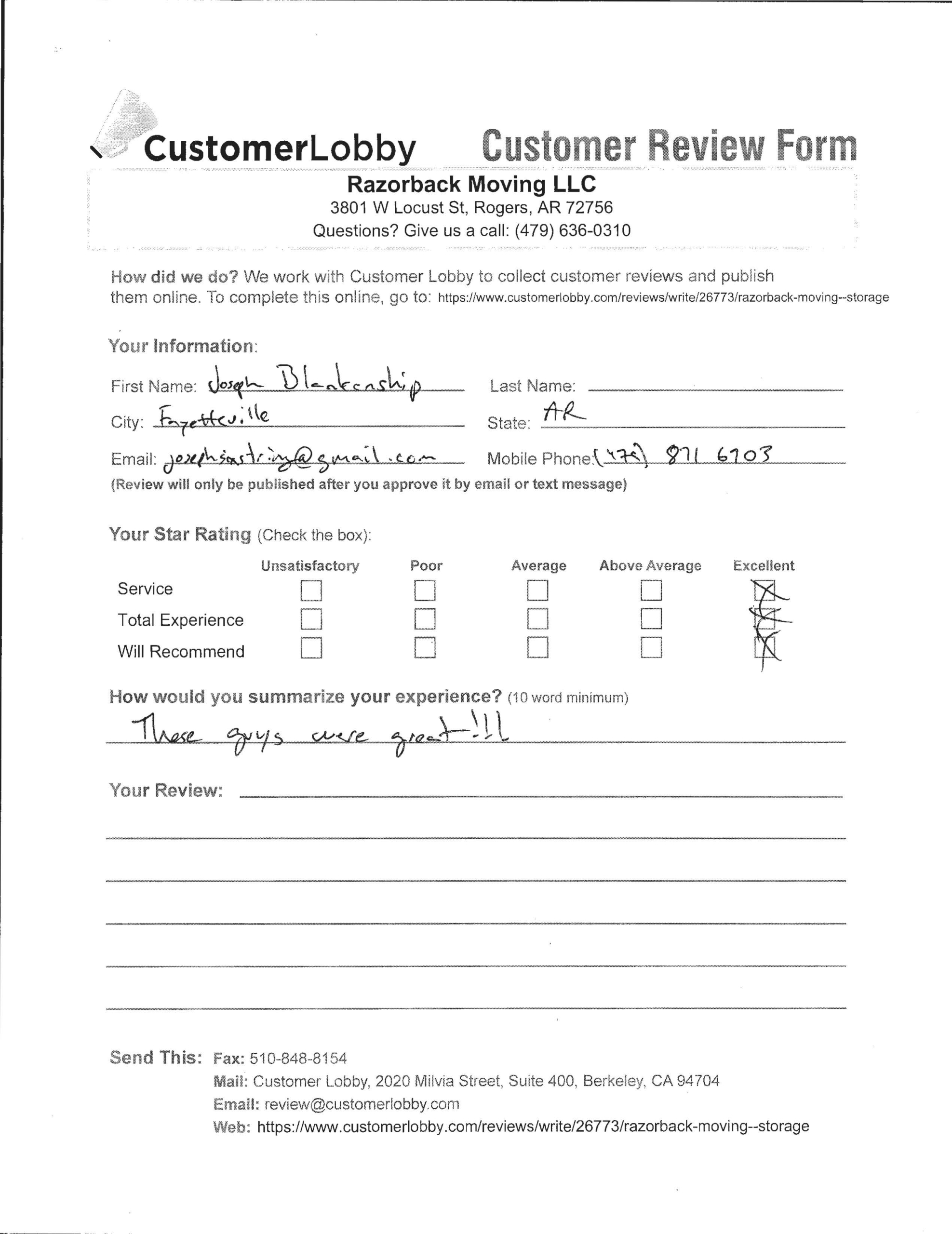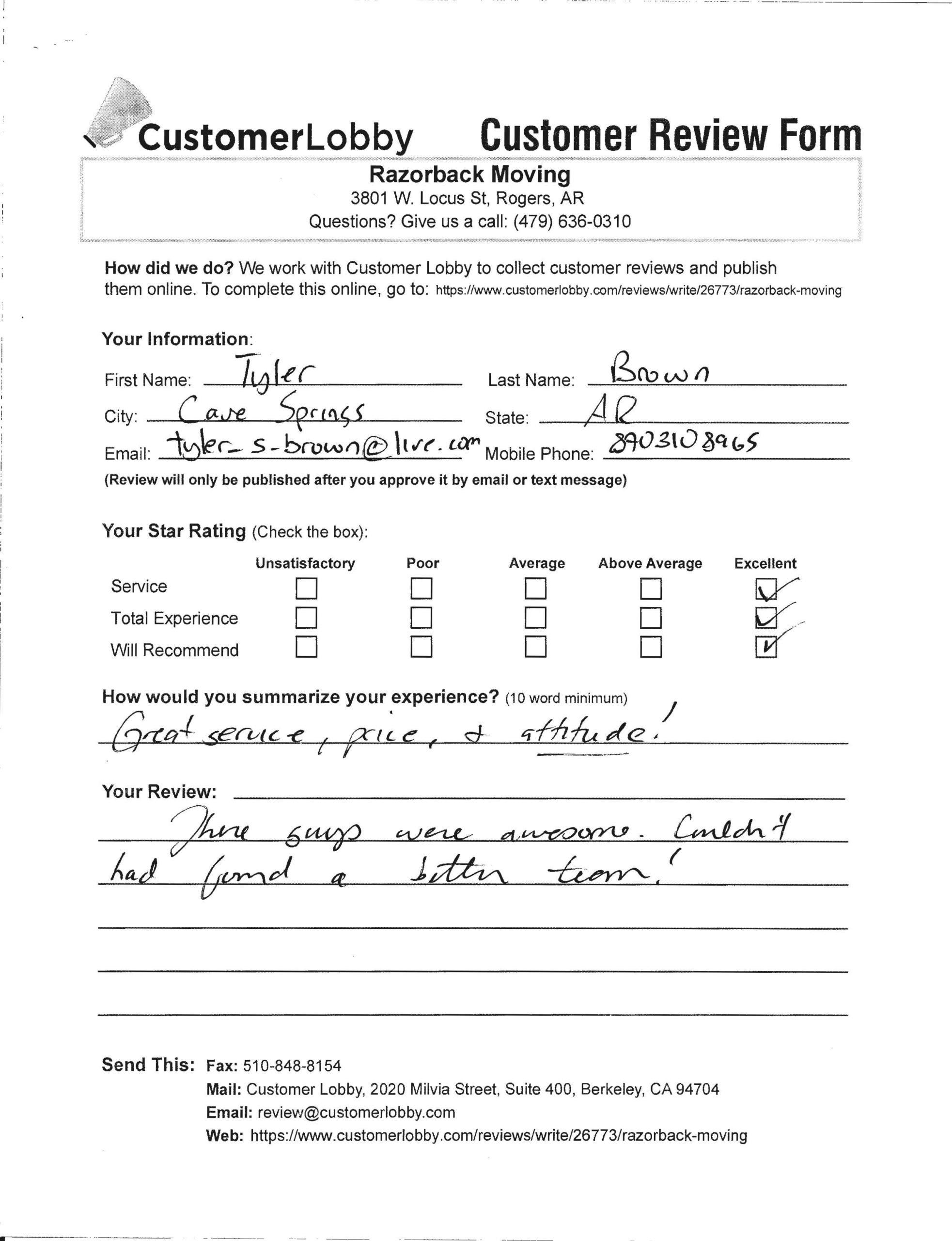 Reviews for Razorback Moving Company