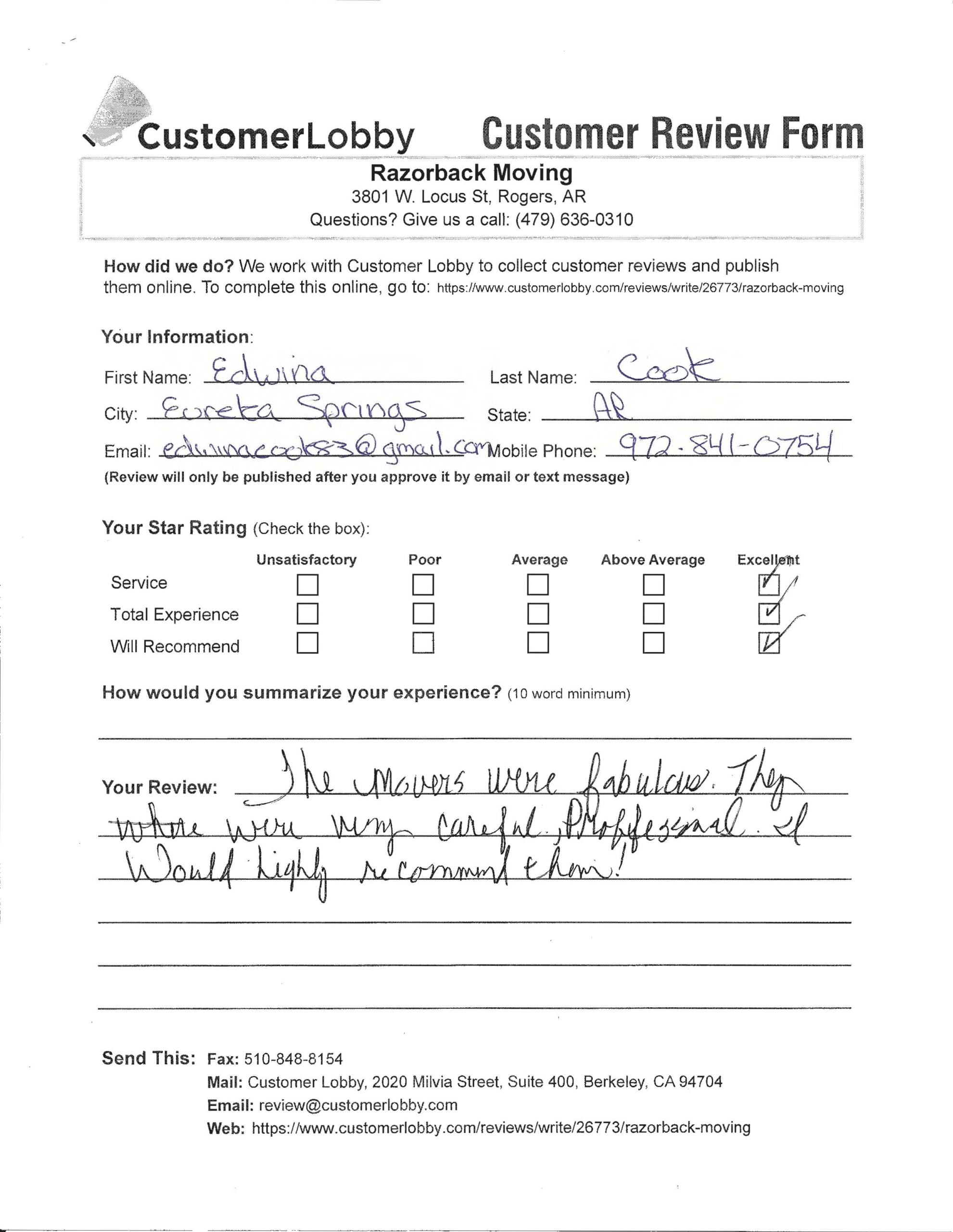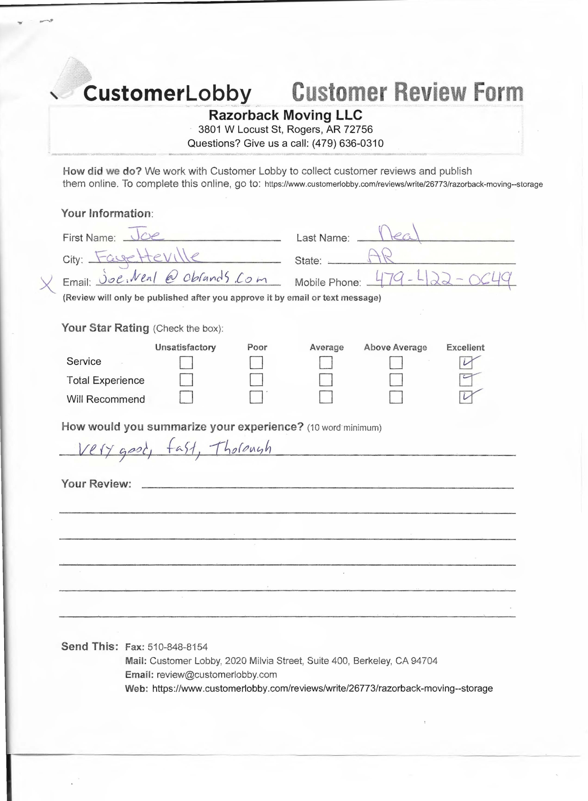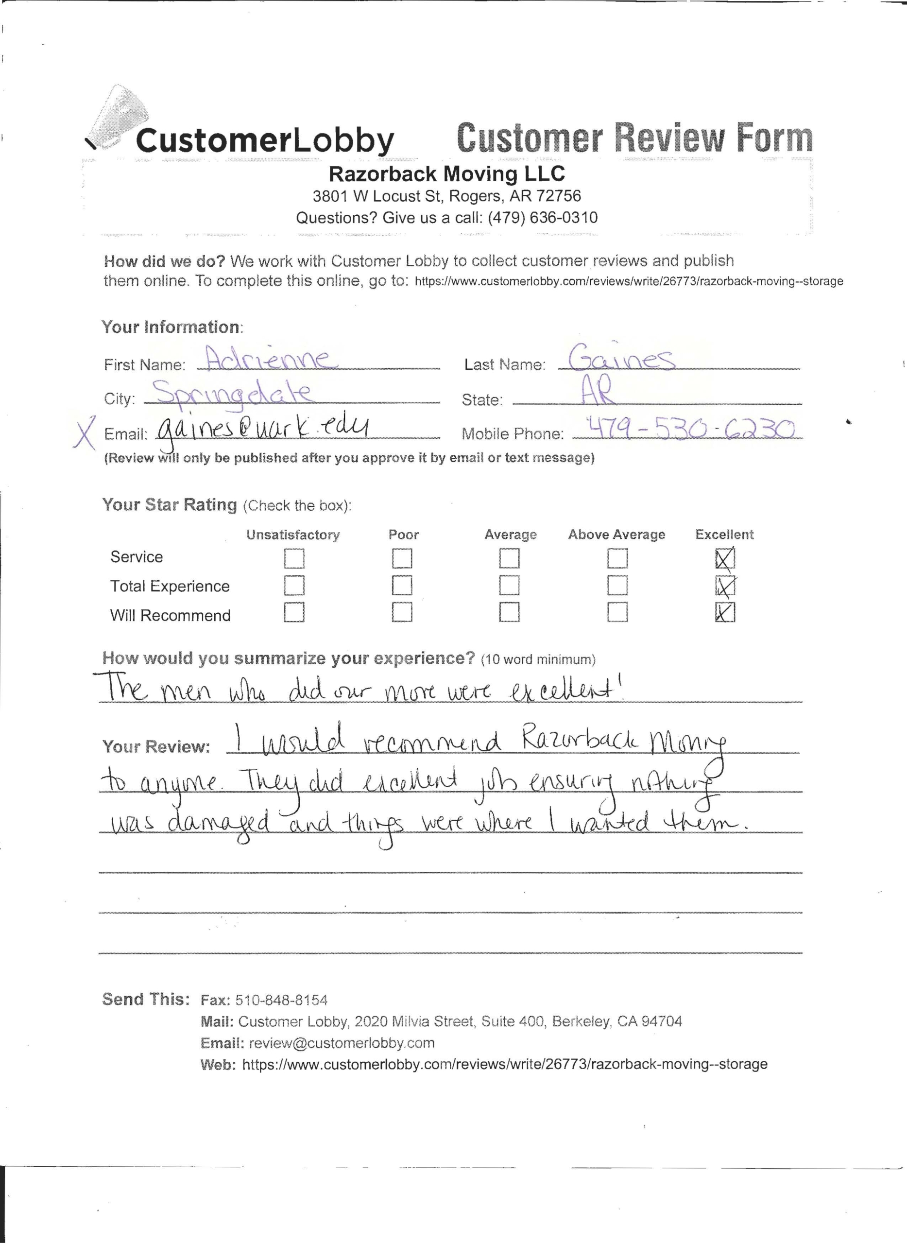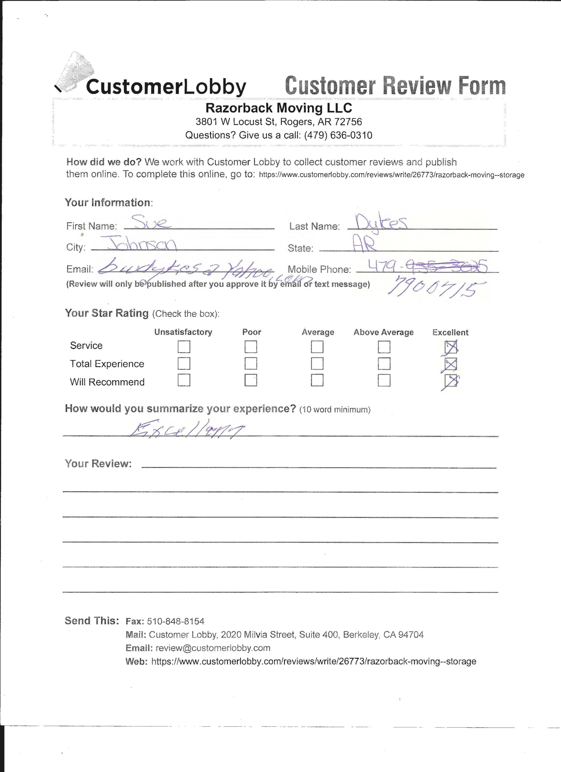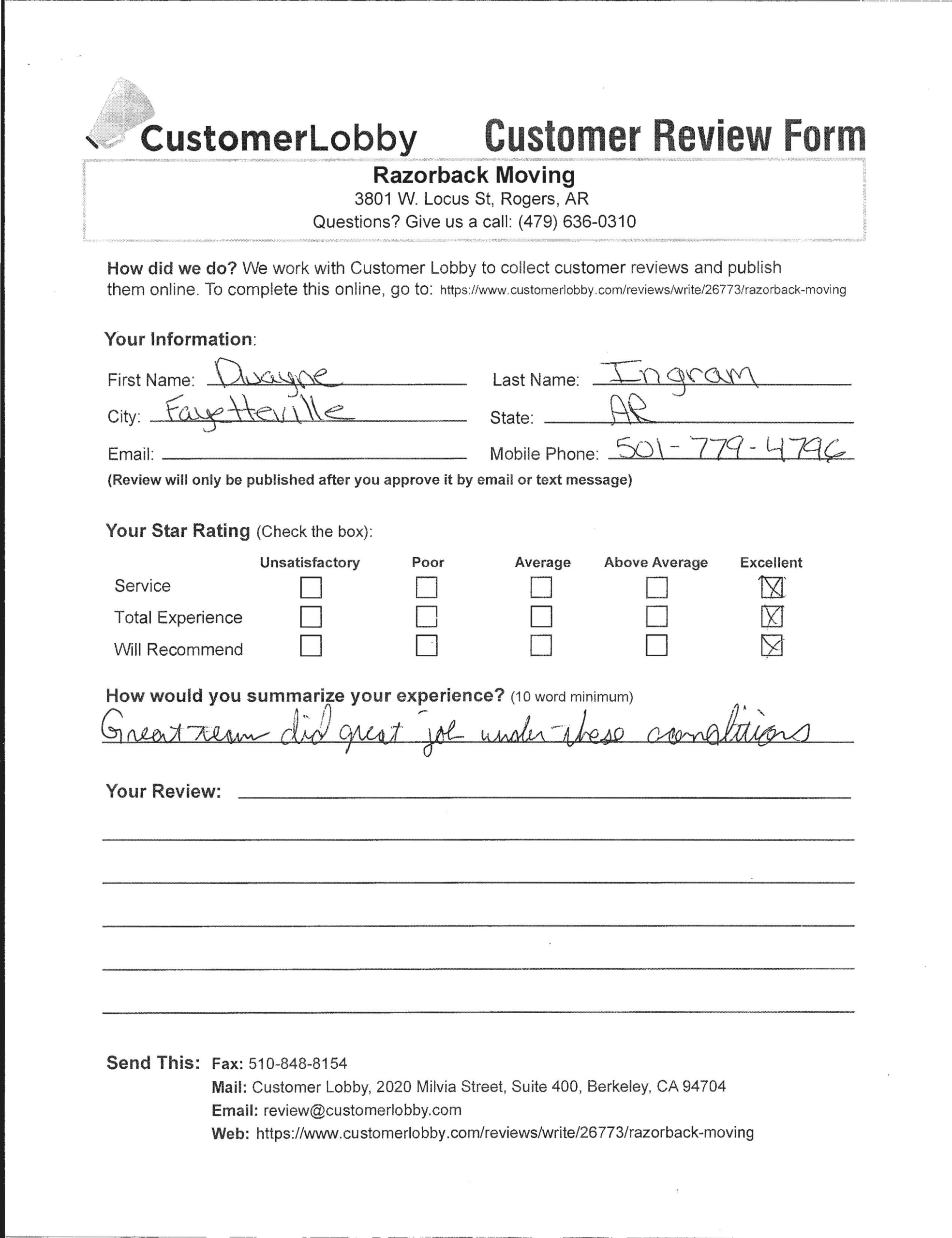Reviews for Razorback Moving Company