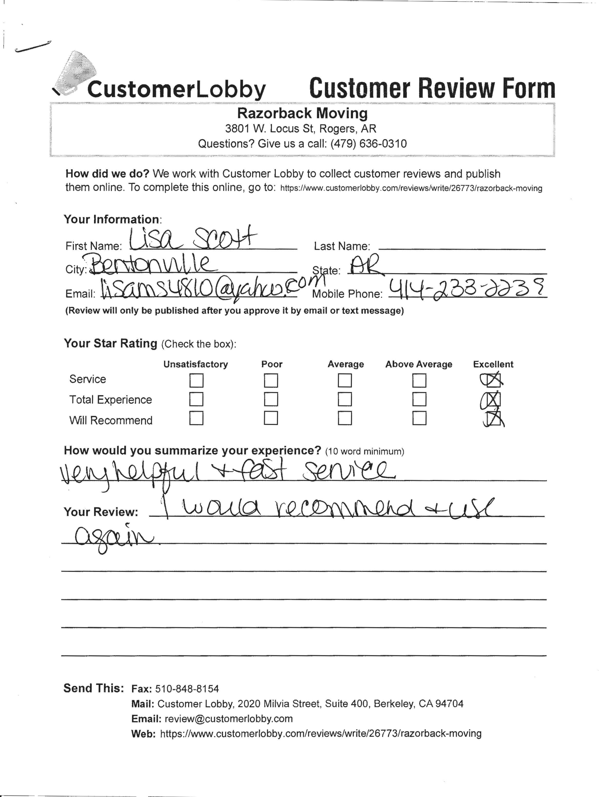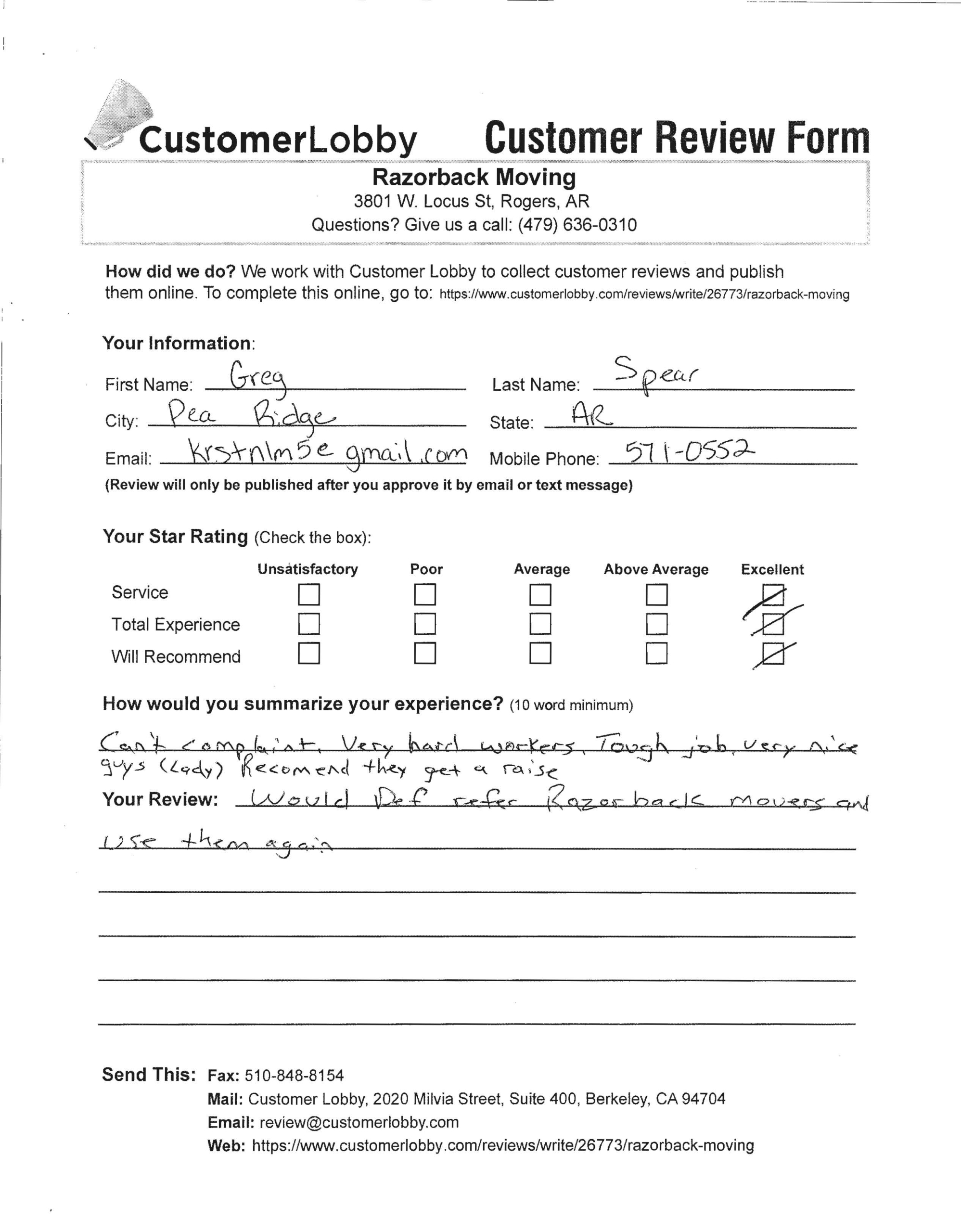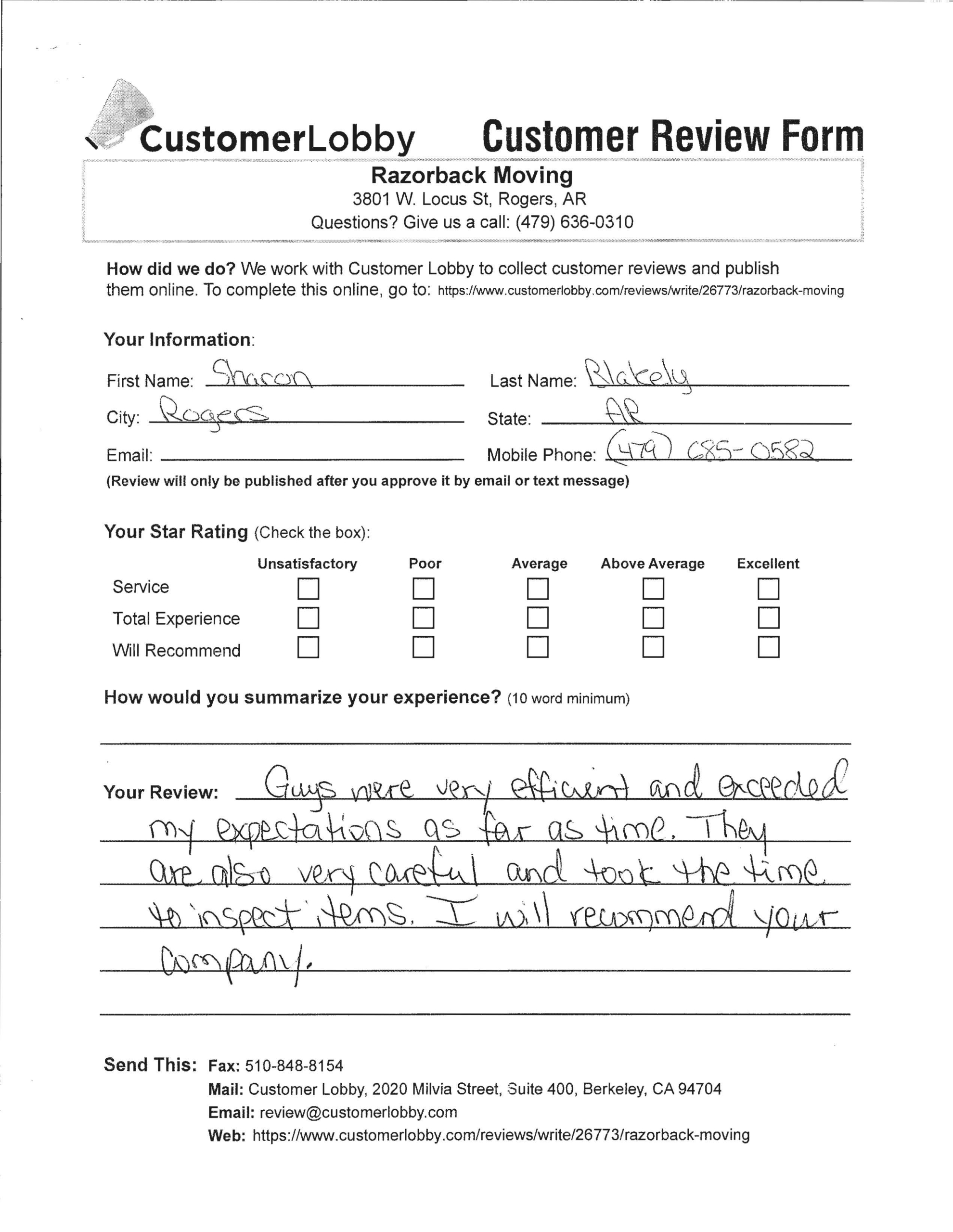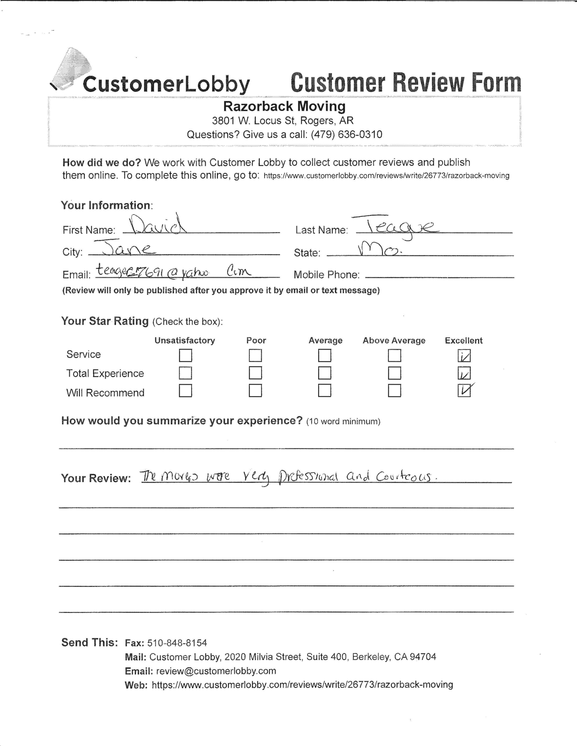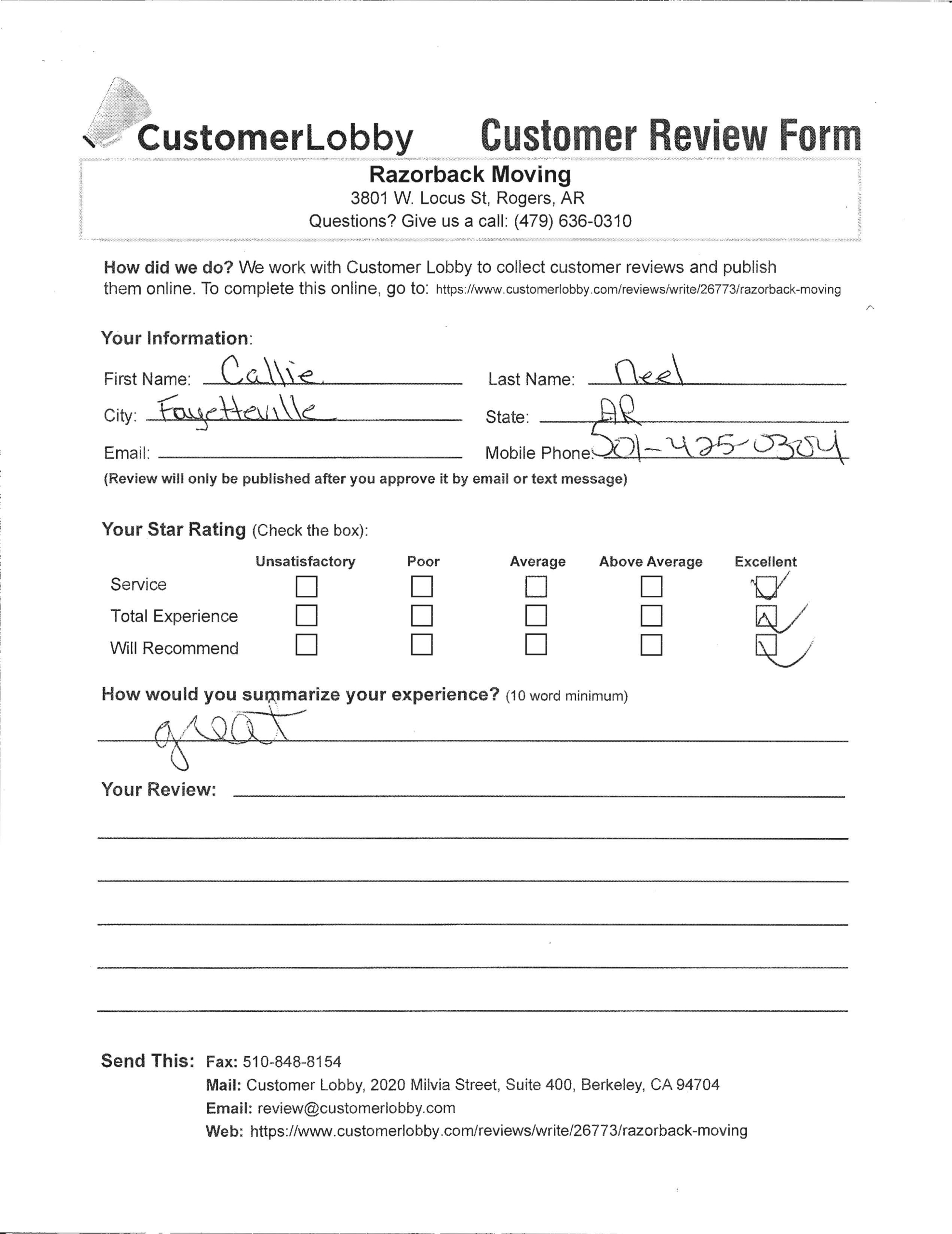 Reviews for Razorback Moving Company