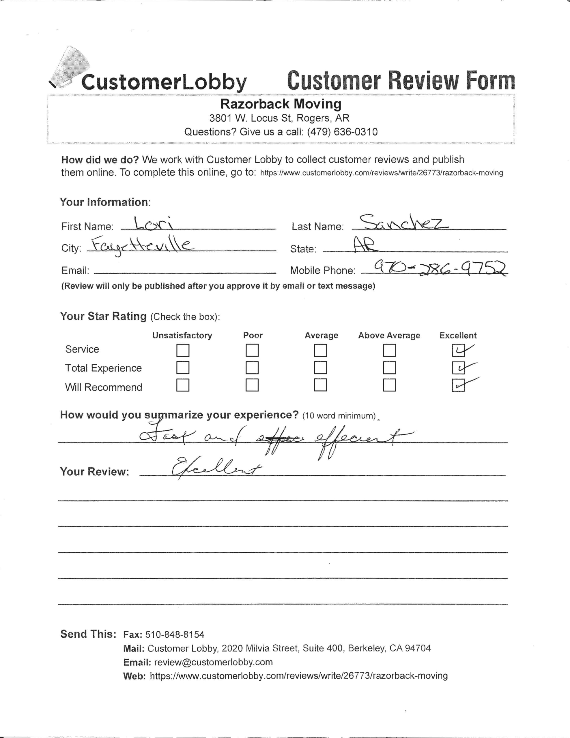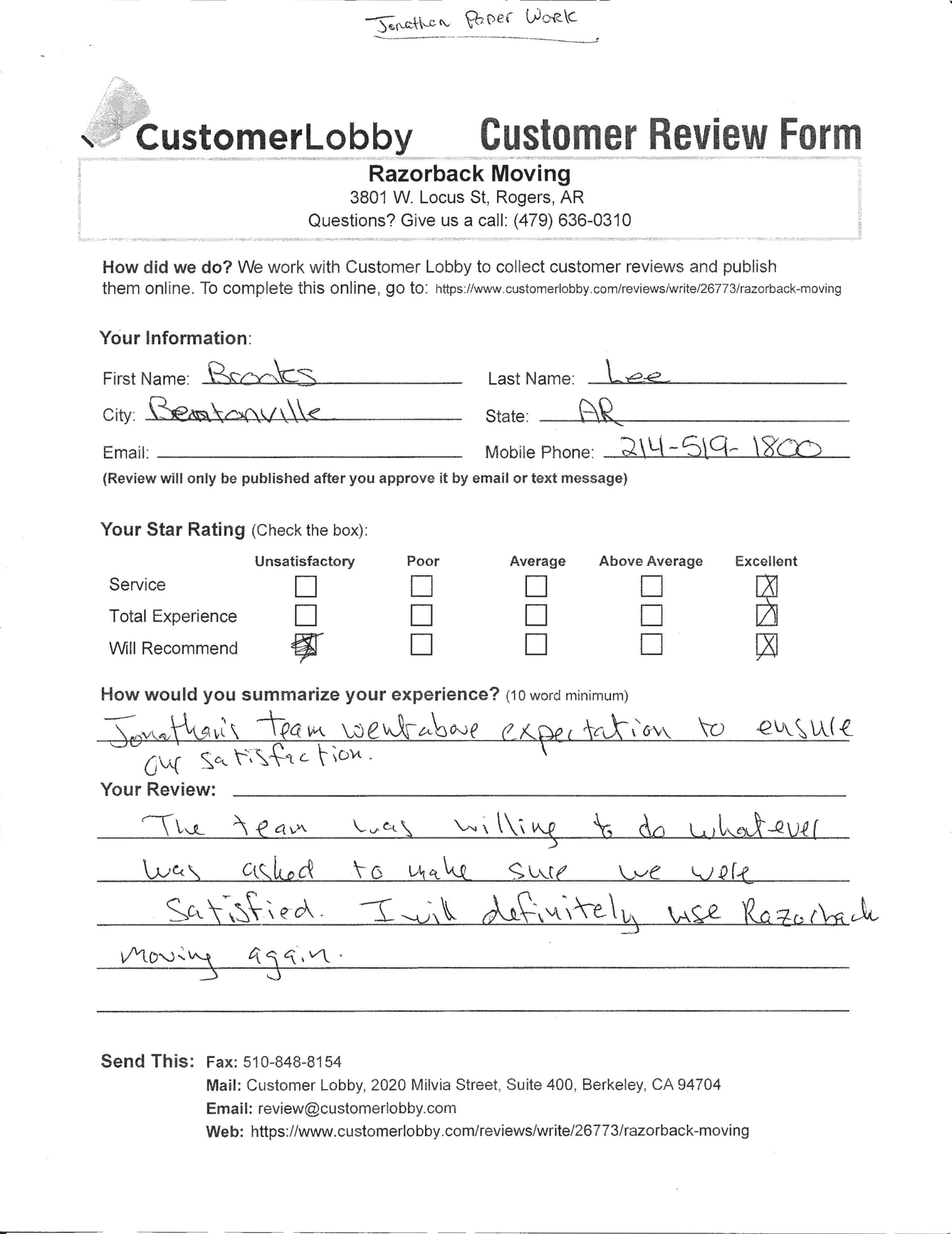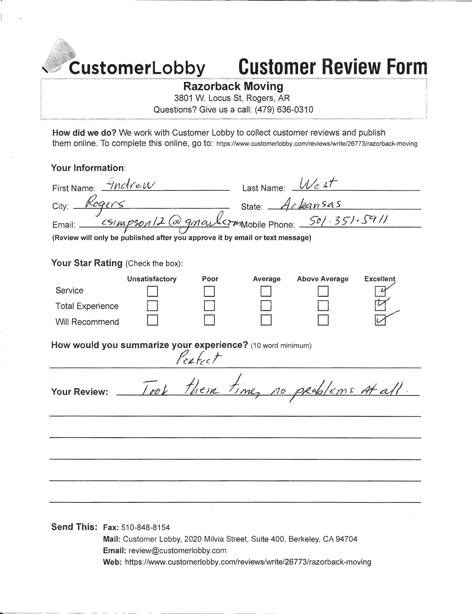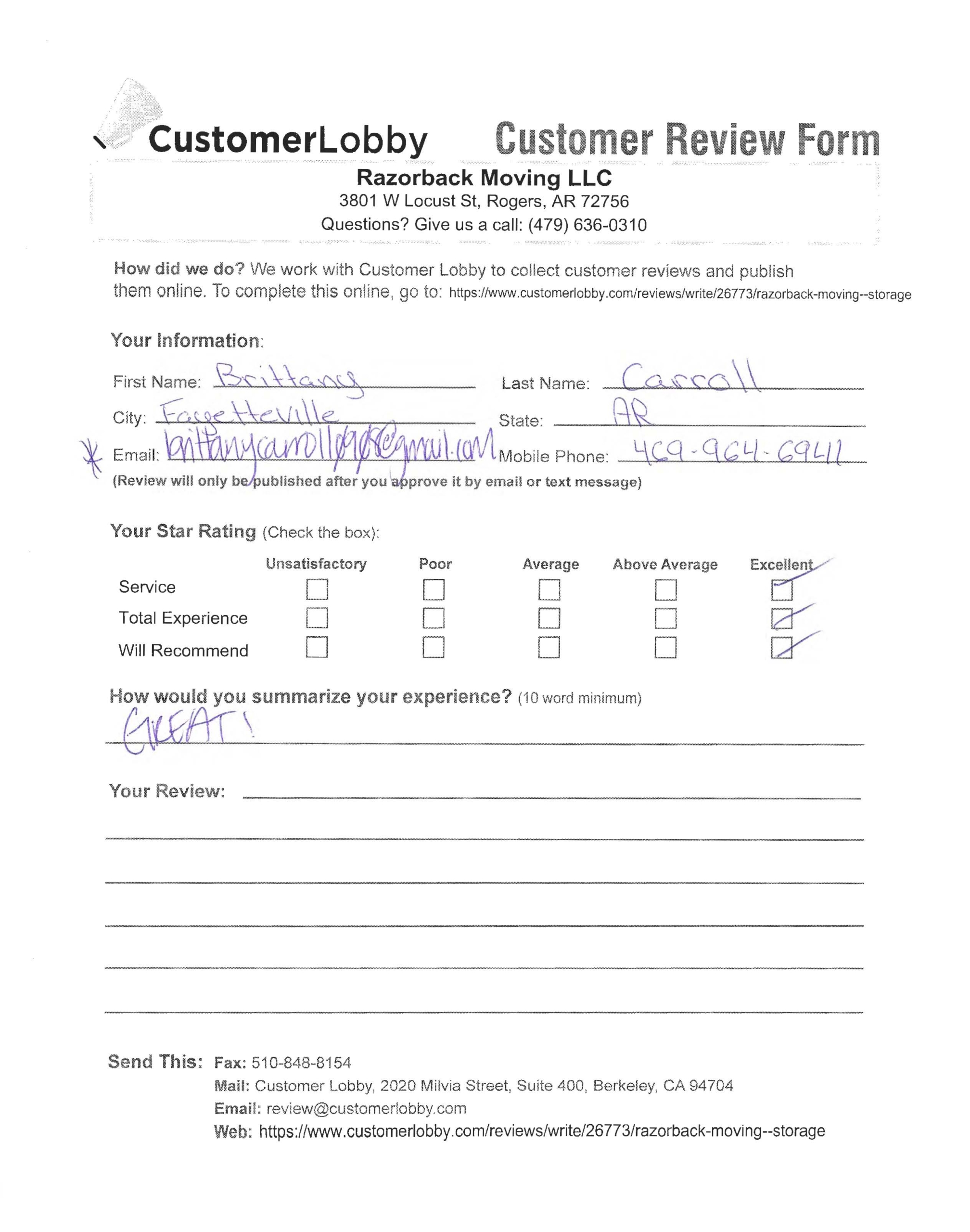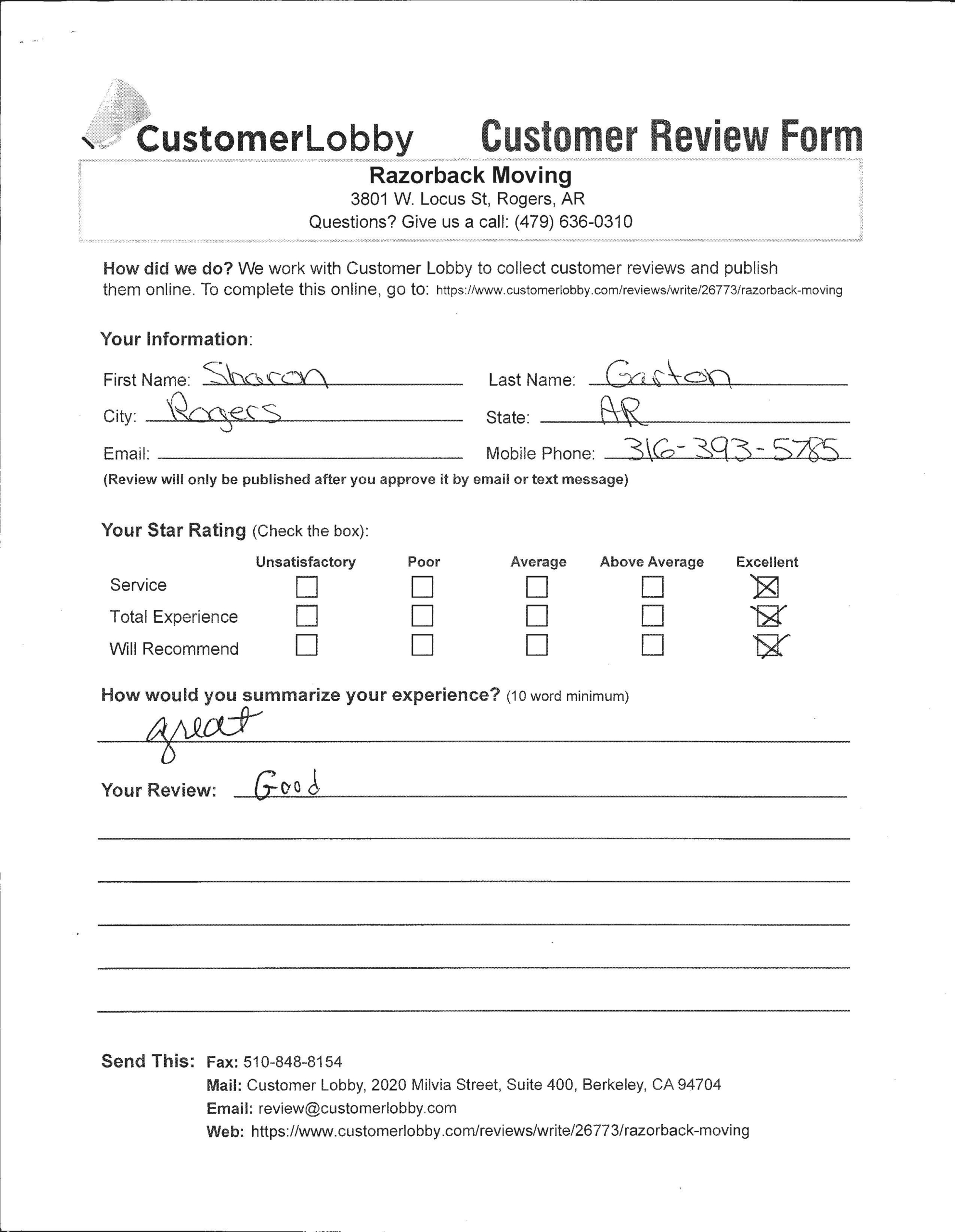 Reviews for Razorback Moving Company