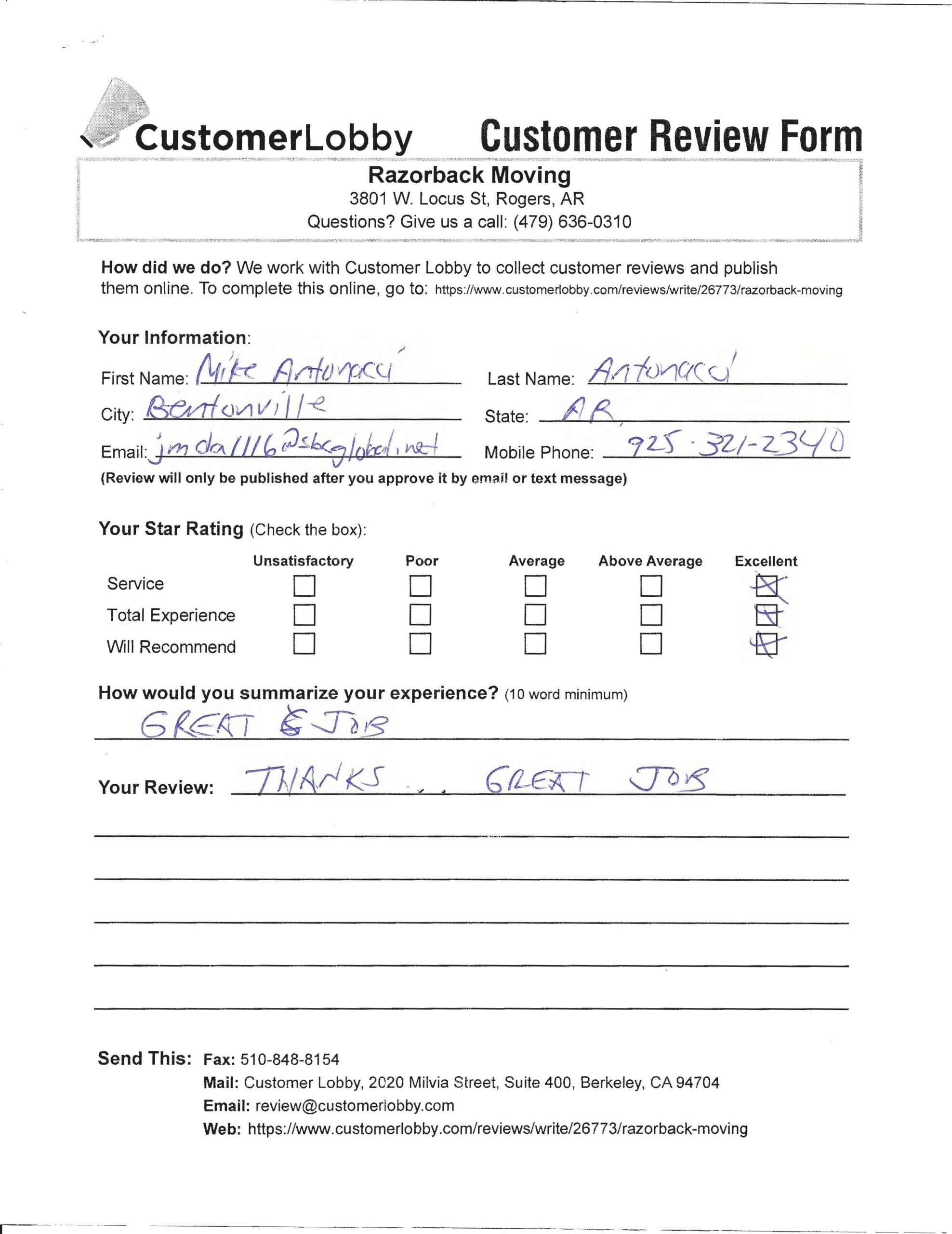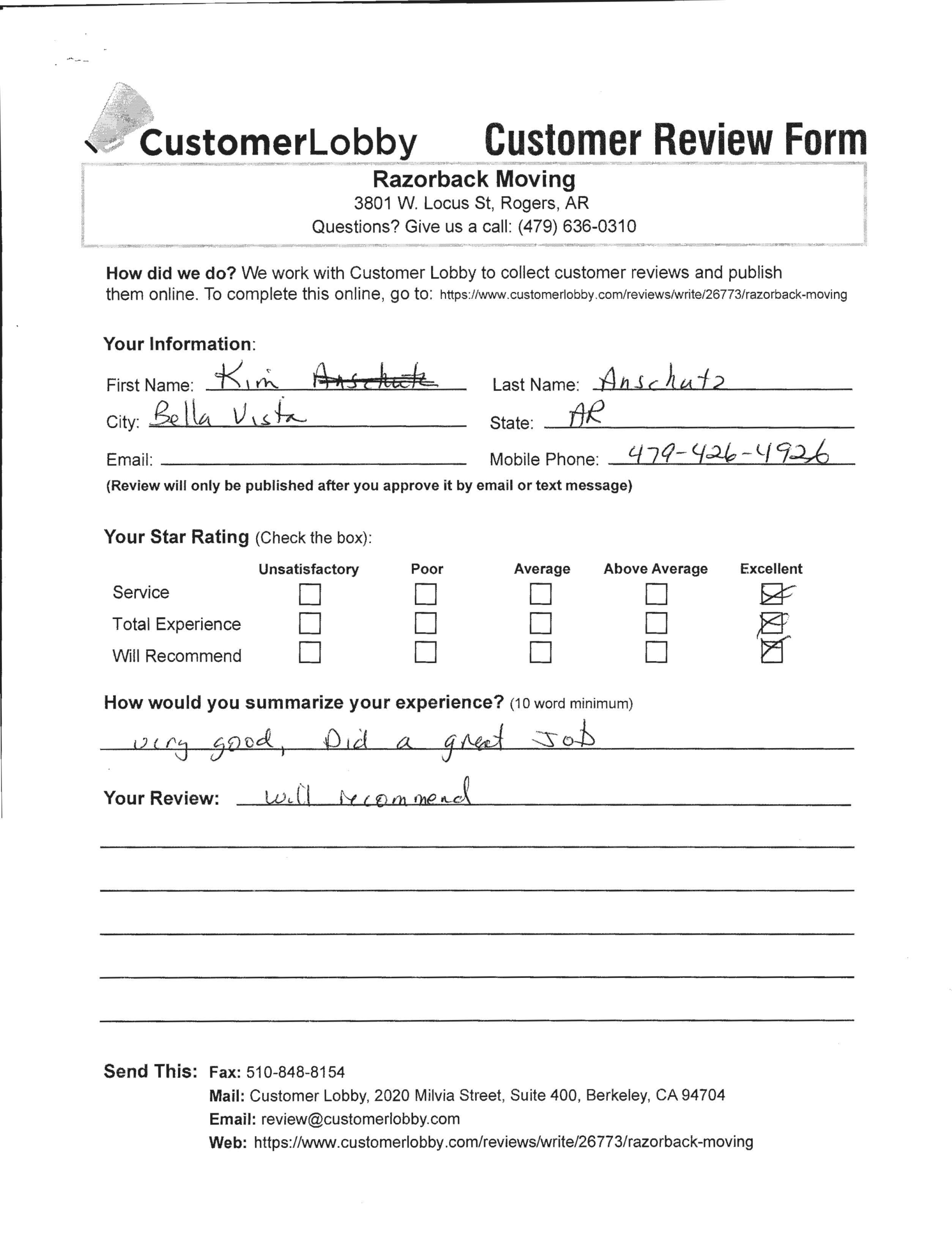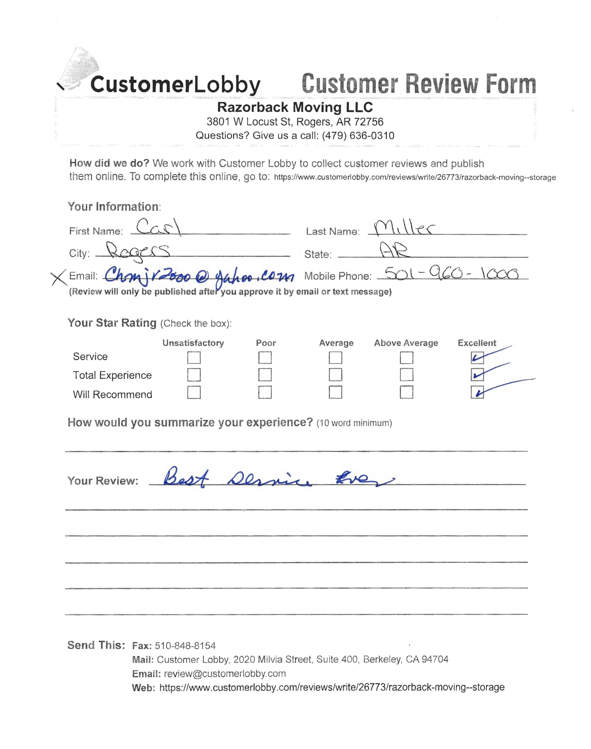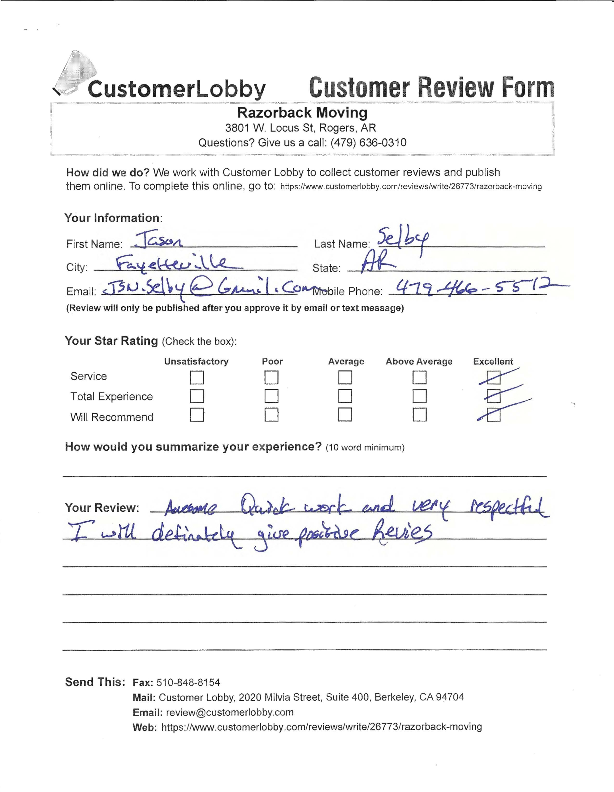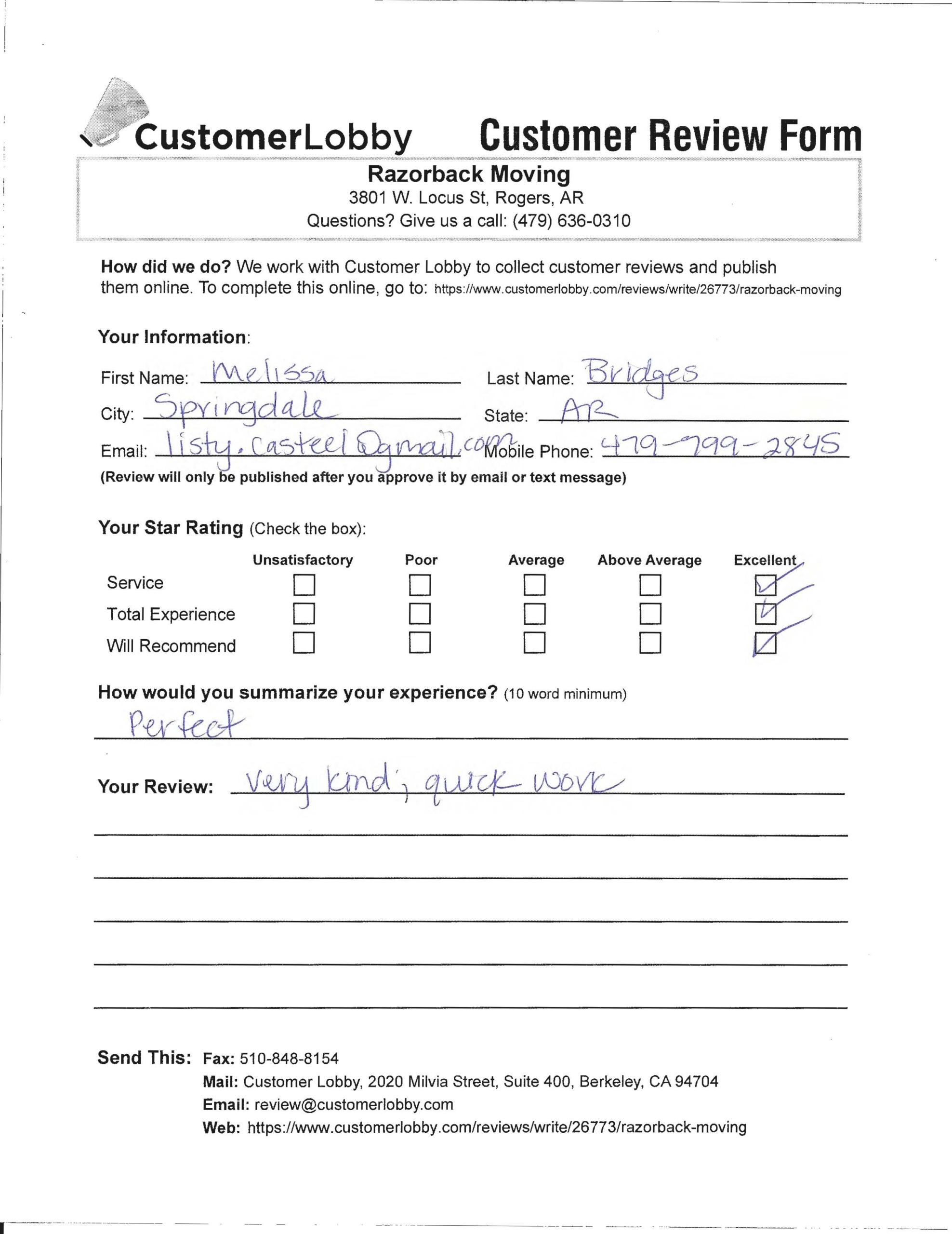 Reviews for Razorback Moving Company